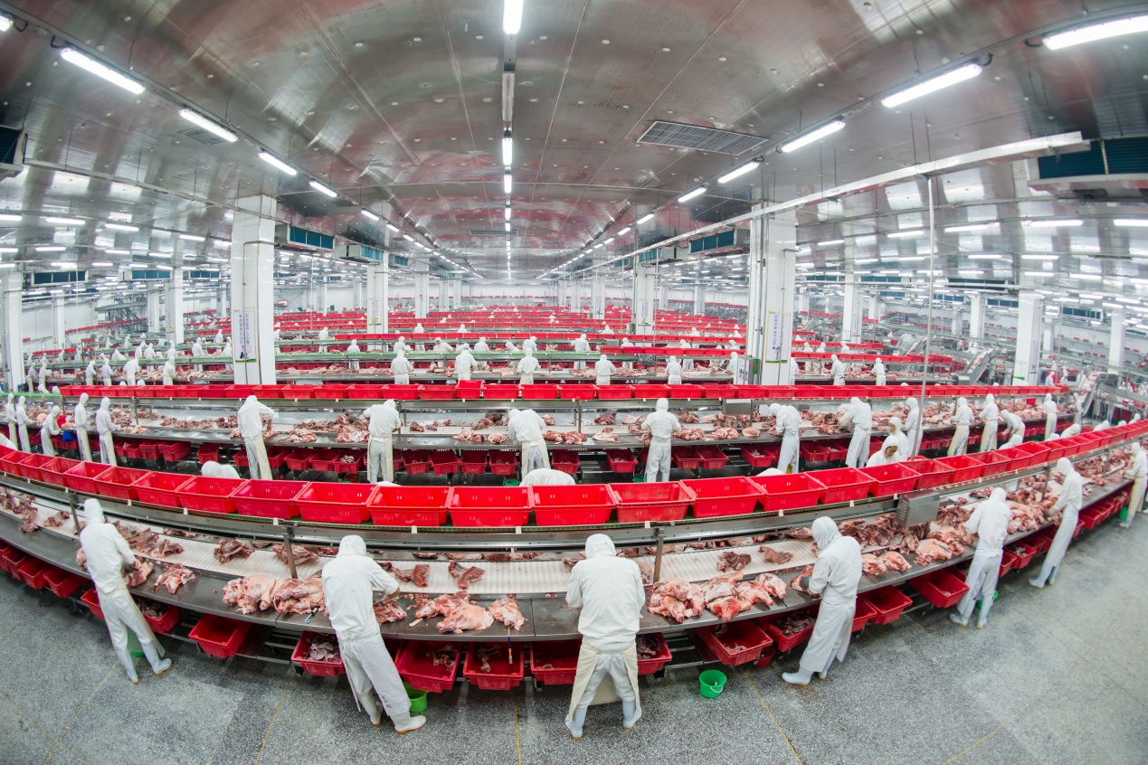 生鮮品事業部是集團發展的重要產業支柱,集生產銷售、服務于一體,依托集團公司綜合優勢,服務于我國肉制品行業。目前生鮮品事業部發展迅猛,擁有4個駐外分廠,23個銷售區域,近200個銷售市場和14000多家冷鮮肉專賣店。已形成年屠宰加工生豬2000萬頭,肉雞2億只的生產能力,其中屠宰車間有90余條流水線,肉雞車間有40余條流水線,是中國最大的生豬屠宰加工生產企業。